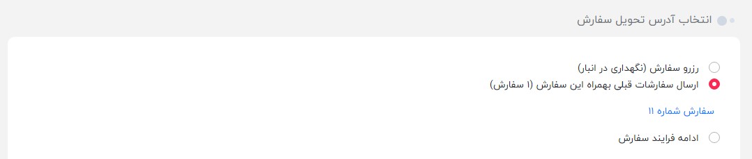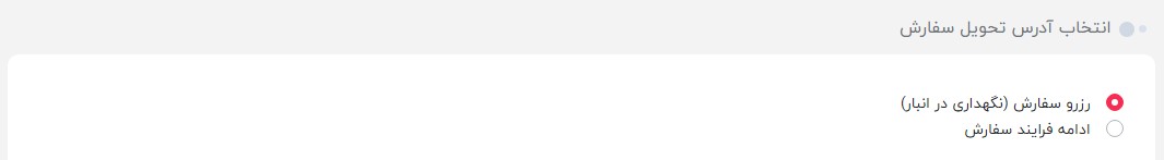 • همانند مرحله اول به هر تعداد که لازم بود در زمان ها یا روزهای دیگر میتوانید سفارشات دیگری را رزرو نمائید. فقط دقت کنید در هر بار سفارش فقط گزینه "رزرو سفارش (نگهداری در انبار)" را در صفحه تسویه حساب انتخاب کنید.